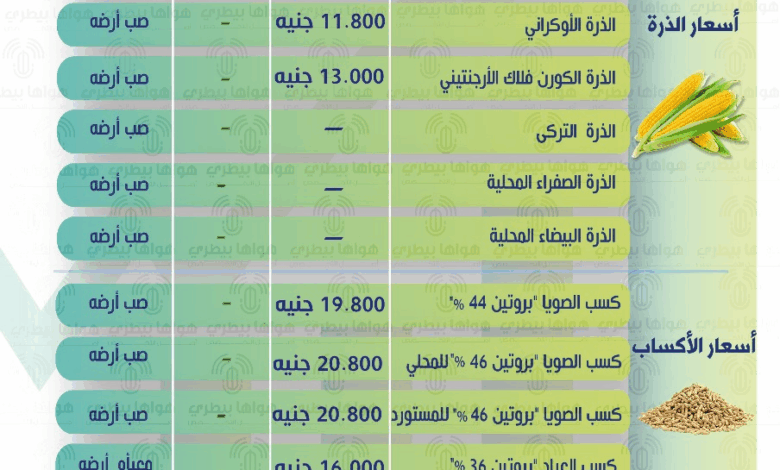 استقرار الخامات العلفية والذرة يوم الأربعاء