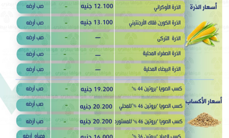 استقرار اسعار الذرة الصفراء والخامات العلفية