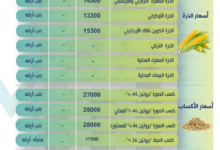 شهدت الاسواق العلفية الموافق يوم الخميس 26 مارس 2026 استقرار في أسعار الخامات العلفية دون اي تغيير ملحوظ