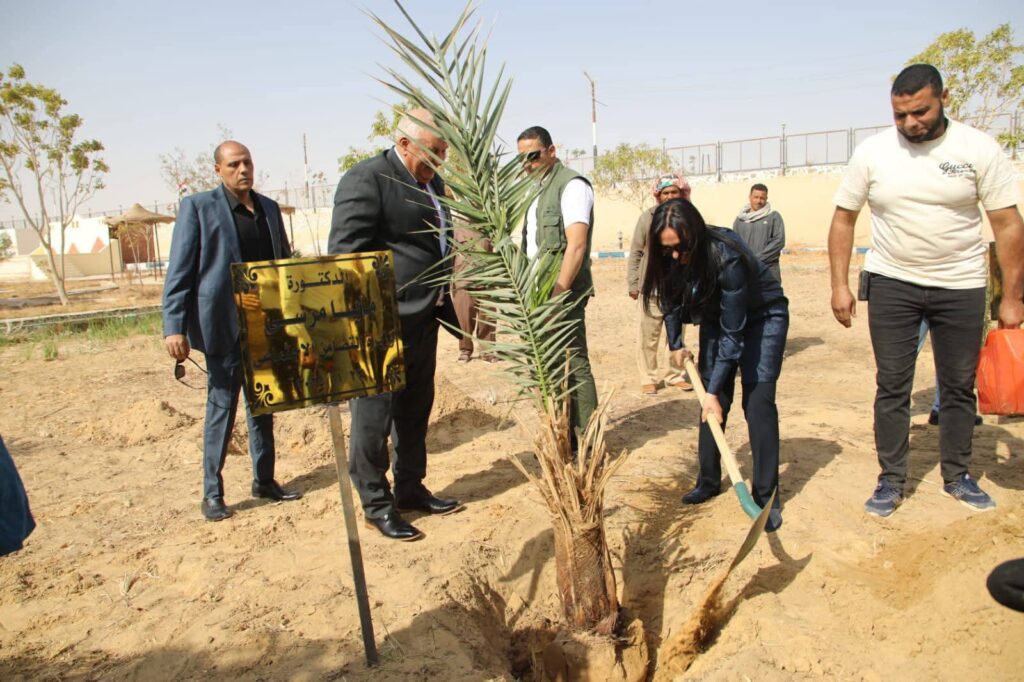 وخلال الزيارة، قامت وزيرة التضامن بغرس نخلة في الحديقة، دعمًا للمبادرة الرئاسية للتوسع في زراعة النخيل وتعزيز إنتاجية التمور بالمحافظة.