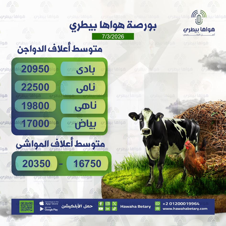 رصد موقع «هواها بيطري»اليوم 7مارس 2026 ارتفاع البوري وانخفاض طفيف في أسعار كتاكيت تسمين عقب استقرار المنجات المصرية وسوف نعرض عليكم قائمة الأسعار في السطور الأتية: