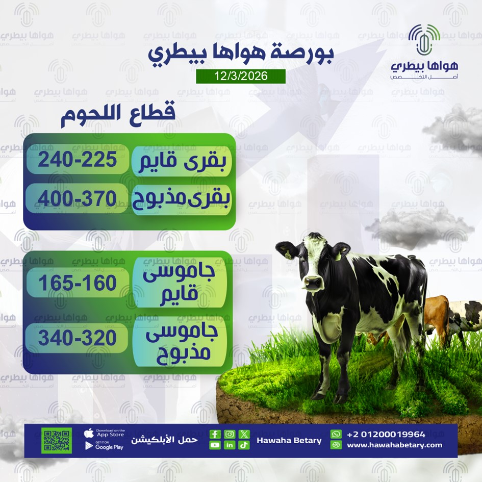 بورصة هواها بيطري:ارتفاع طفيف في أسعار المنتجات الحيوانية يوم الخميس 12/3/2026