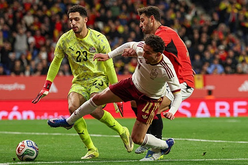 مدرب إسبانيا يشيد بمصطفى شوبير بعد تعادل الفراعنة الودي: «درس ثمين للفريق»