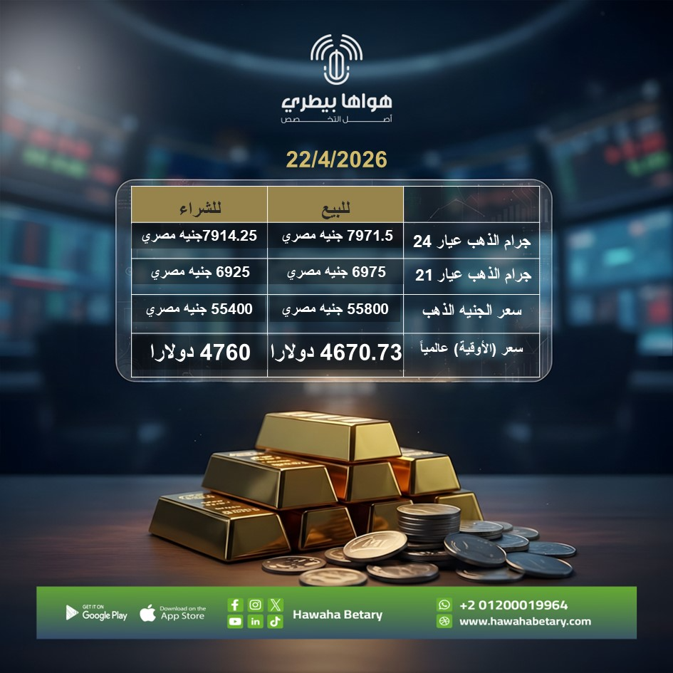 «هواها بيطري»: الذهب يهبط محليًا والدولار يصعد.. وتذبذب في أسعار الفضة