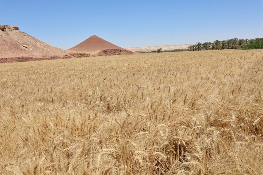 محافظ الوادي الجديد تتابع تجربة واعدة لإكثار أصناف القمح عالية الإنتاج بالداخلة